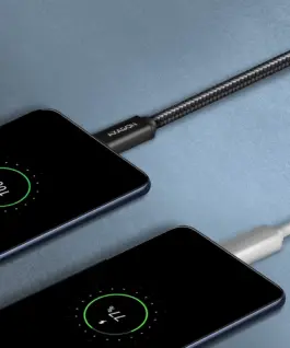 Power cables 22AWG (lower number = larger cross-section and lower wire resistance) guarantee fast charging of phones and other mobile devices. Data wires 28AWG together with high-quality shielding, ensure reliable data transmission. Double shielding protects transmitted signals from adverse interference.