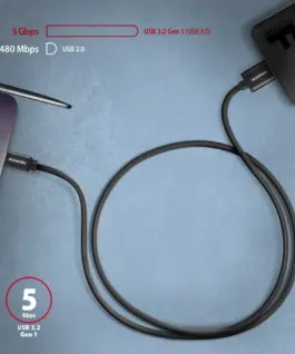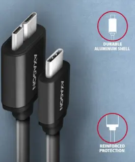 Premium connection Micro-B USB USB-C Data and Charging AXAGON BUMM3-CM10AB SPEED USB 3.0 cable with Micro-B USB male and USB-C male connectors. The cable is designed for fast data transfers and external hard disks and other mobile device charging. It supports up to 5 Gb/s data transfer and charging with current up to 3A.