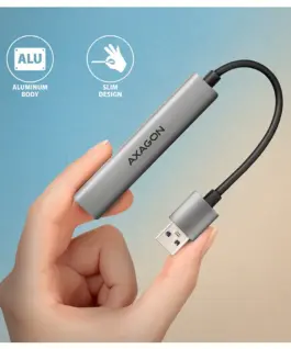 The slim aluminium USB-C 5Gbps AXAGON HUE-STA ALU STRIP hub easily and quickly connects up to four USB devices simultaneously to a Лаптоп or Компютър. You connect your Лаптоп to the hub via a 12 cm long USB-A cable.
