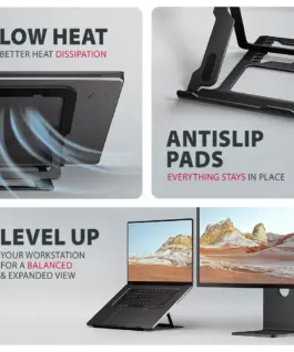 The stand can be easily folded into a compact size, making it convenient to carry wherever you need to go. Its elegant black design not only complements your desk in style, but also brings practical features you’ll appreciate in everyday use.