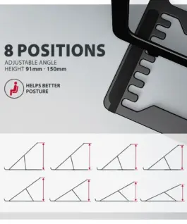 A great advantage is the ability to adjust the stand to up to eight positions. This allows you to raise the Лаптоп to a height from 91 to 150 mm. This gives you an additional work place at the correct eye level, which greatly improves ergonomics and comfort at work, while increasing your productivity.