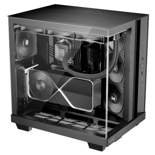 Bottom: 3 x 120 mmБРОЙ 3.5″ ГНЕЗДА : 2БРОЙ 2.5″ SSD ГНЕЗДА : 2РАЗШИРИТЕЛНИ СЛОТОВЕ : 7МАКС. РАЗМЕР ОХЛАДИТЕЛ : 185 mmМАКС. РАЗМЕР ВИДЕОКАРТА : 400 mmЦВЯТ : ЧеренДОПЪЛНИТЕЛНИ : Angled slide-out fan frame on the side routes air directly to the GPU