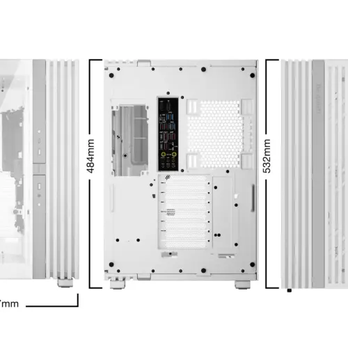 Rear: 1 x 140 / 1 x 120 mmБРОЙ 3.5″ ГНЕЗДА : 2БРОЙ 2.5″ SSD ГНЕЗДА : 6РАЗШИРИТЕЛНИ СЛОТОВЕ : 8МАКС. РАЗМЕР ОХЛАДИТЕЛ : 190 mmМАКС. РАЗМЕР ВИДЕОКАРТА : 495 mmЦВЯТ : БялДОПЪЛНИТЕЛНИ : Fully windowed front and side panel for a stunning panoramic view on all your PC components