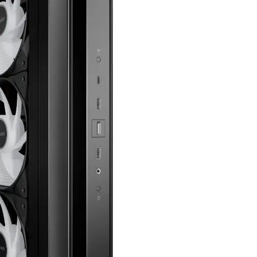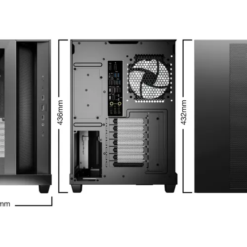 Bottom: 3 x 120 mmБРОЙ 3.5″ ГНЕЗДА : 1БРОЙ 2.5″ SSD ГНЕЗДА : 2РАЗШИРИТЕЛНИ СЛОТОВЕ : 7МАКС. РАЗМЕР ОХЛАДИТЕЛ : 185 mmМАКС. РАЗМЕР ВИДЕОКАРТА : 400 mmЦВЯТ : ЧеренДОПЪЛНИТЕЛНИ : Angled slide-out fan frame on the side routes air directly to the GPU