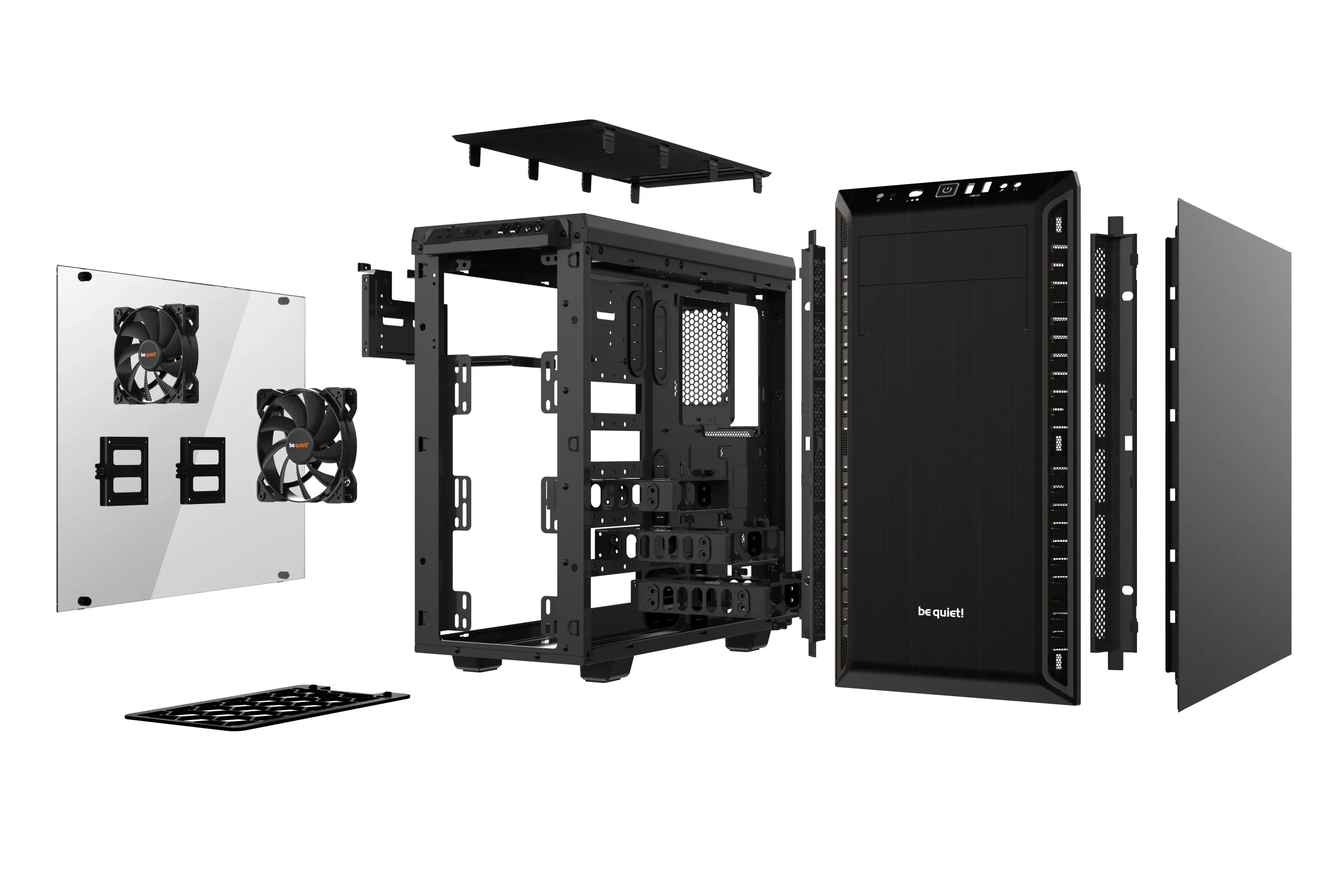 Rear: 1 x 120 mmБРОЙ DVD 5.25″ ГНЕЗДА : 2БРОЙ 3.5″ ГНЕЗДА : 5БРОЙ 2.5″ SSD ГНЕЗДА : 12РАЗШИРИТЕЛНИ СЛОТОВЕ : 7МАКС. РАЗМЕР ОХЛАДИТЕЛ : 165 mmМАКС. РАЗМЕР ВИДЕОКАРТА : 425 mmЦВЯТ : ЧеренДОПЪЛНИТЕЛНИ : 2 pre-installed be quiet! Pure Wings 2 fans