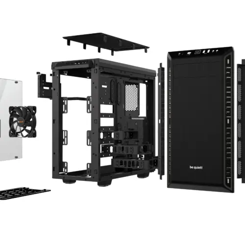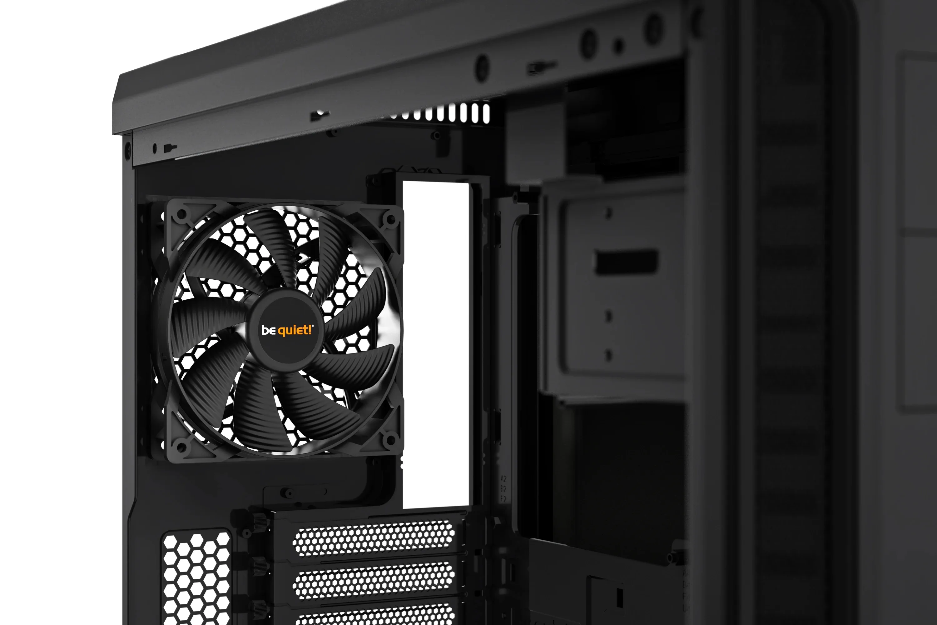 Rear: 1 x 120 mmБРОЙ DVD 5.25″ ГНЕЗДА : 2БРОЙ 3.5″ ГНЕЗДА : 5БРОЙ 2.5″ SSD ГНЕЗДА : 12РАЗШИРИТЕЛНИ СЛОТОВЕ : 7МАКС. РАЗМЕР ОХЛАДИТЕЛ : 165 mmМАКС. РАЗМЕР ВИДЕОКАРТА : 425 mmЦВЯТ : ЧеренДОПЪЛНИТЕЛНИ : 2 pre-installed be quiet! Pure Wings 2 fans