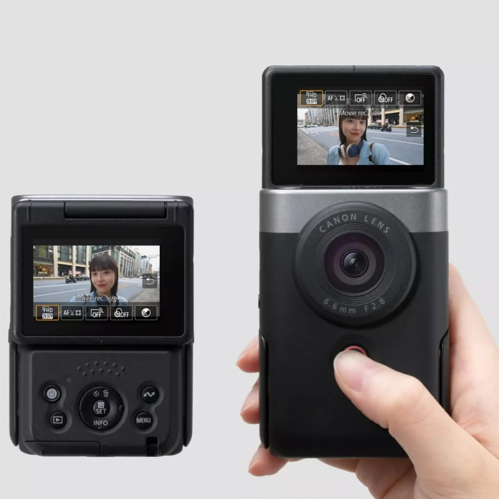 This small (63.4 x 90.0 x 34.3 mm), weighing 211 g special camera allows discreet, comfortable and enjoyable vlogging.