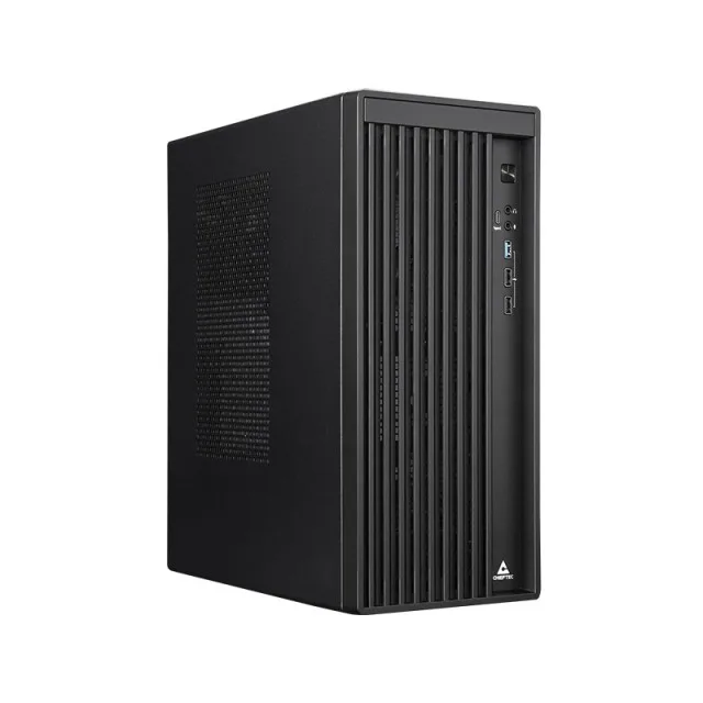 The BS-20B-OP from CHIEFTEC’s UNI Series is a versatile, compact mini-tower computer case that combines functionality with a modern, professional design. With a minimal footprint and a total volume of less than 20 liters, the BS-20B-OP is ideal for home and office environments without sacrificing important features, such as full mATX motherboard support, compatibility with ATX power supplies, an ultra-slim optical drive, and even graphics cards up to 270mm long. Its many features include a user-friendly rotation mechanism for easy, partially tool-free installation. The timelessly elegant front panel houses all essential ports, including a USB Type-C port.