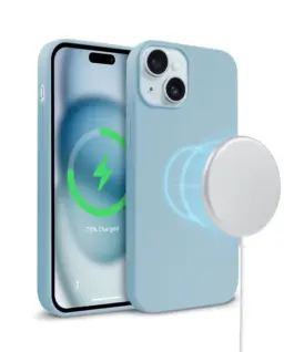 Made from liquid silicone, the Цвят Cover Magnetic protective case for iPhone 15 with built-in magnets for the charger and accessories from MagSafe. High-quality N52 magnets with high attracting power ensure that the MagSafe charger and other magnetic accessories fit into the Crong case and adhere securely to the Apple phone.