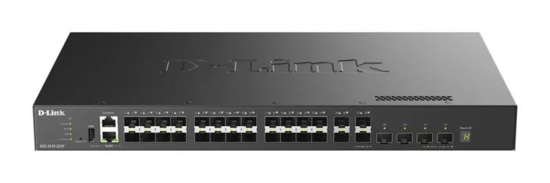 The DXS-3410 Series is a family of stackable 10G Layer 3 managed switches designed to connect end users in a secure Enterprise or Metro Ethernet access network. These switches support both multicast and enhanced security, making them an ideal multi-gigabit access layer solution. The DXS-3410 Series is equipped with Multi-Gigabit Ethernet and SFP+ network connectivity options, and includes models equipped with Multi-Gigabit Ethernet and SFP28 network connectivity.