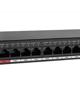 The Dahua PFS3010-8ET-96-V2 8-Port PoE Switch (Unmanaged) is a cost-effective Layer 2 switch that is equipped with 8 802af/at (10/100Mbps) RJ45 PoE ports and 2 1 Gbps RJ45 Uplink ports. The PFS3010-8ET-96-V2 is Съвместим с the IEEE802.3af and IEEE802.3at power standards. It supports PoE standards IEEE802.3af (PoE), IEEE802.3at (PoE+), Hi-PoE, IEEE802.3bt. It is a great solution for expanding a home or office network.