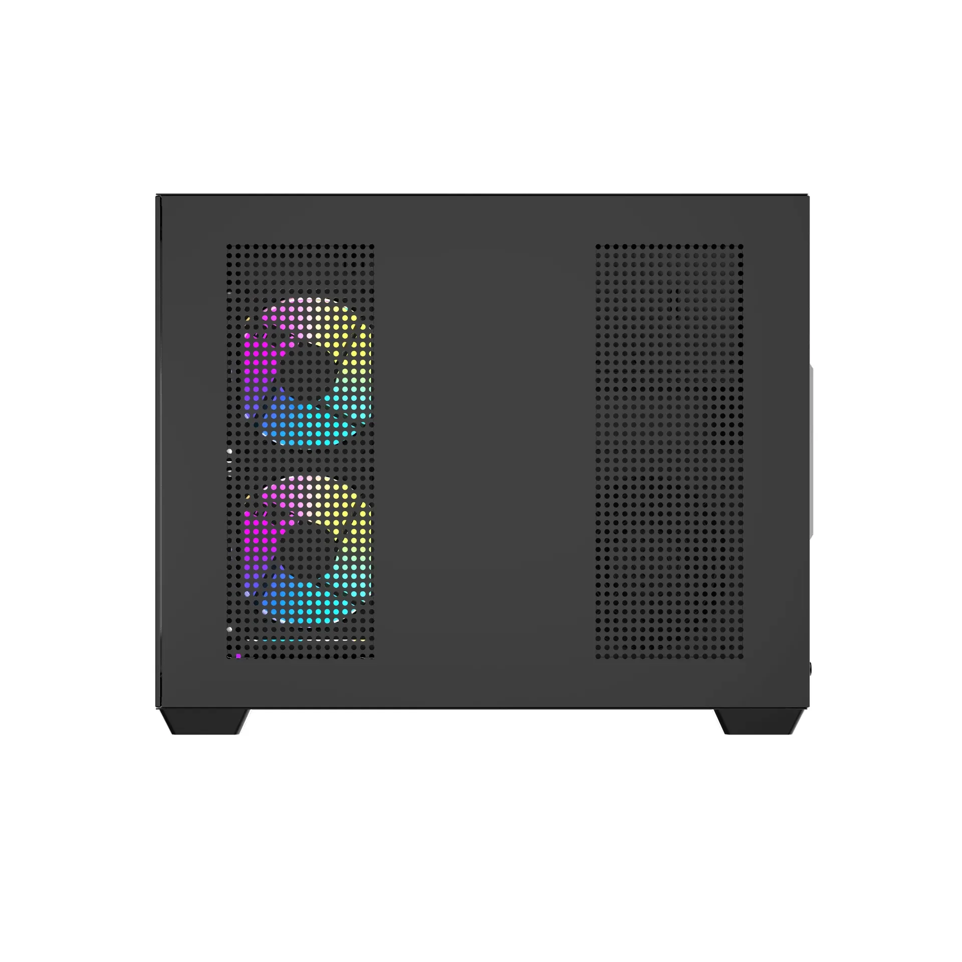 Bottom: 120 mm x 3БРОЙ 3.5″ ГНЕЗДА : 1БРОЙ 2.5″ SSD ГНЕЗДА : 2РАЗШИРИТЕЛНИ СЛОТОВЕ : 5МАКС. РАЗМЕР ОХЛАДИТЕЛ : 160 mmМАКС. РАЗМЕР ВИДЕОКАРТА : 410 mmЦВЯТ : ЧеренДОПЪЛНИТЕЛНИ : Pillar-less dual glass design provides a seamless 270° panoramic view
