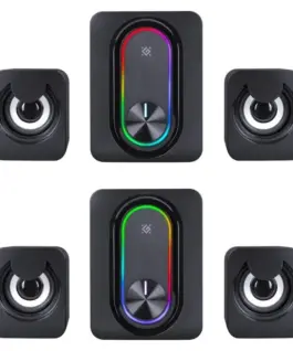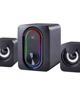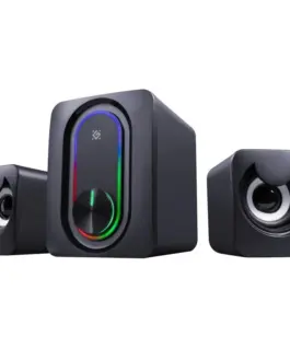 Compact 2.1 speaker system with a subwoofer and stereo satellites. The latest Bluetooth 5.3 ensures a stable wireless connection. Bright LED lighting on the subwoofer creates a unique atmosphere for gaming, listening to music, and watching movies. Plug and playpowered via USB, with audio through a 3.5 mm jack.