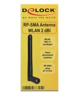 Антена Delock WLAN, 802.11 ac/a/b/g/ni, RP-SMA plug, 2 dBi, Черен