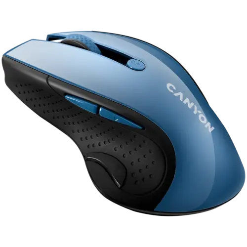 Безжична мишка CANYON 2.4Ghz wireless mouse, optical tracking – blue LED, 6 buttons, DPI 1000/1200/1600, Blue Gray pearl glossy