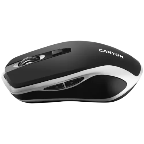 Безжична мишка CANYON MW-19, 2.4GHz Wireless Rechargeable Mouse with Pixart sensor, 6keys, Silent switch for right/left keys,Add NTCDPI: 800/1200/1600, Max. usage 50 hours for one time full charged, 300mAh Li-poly battery, Black -Silver, cable length 0.6m, 121*70*39mm, 0.