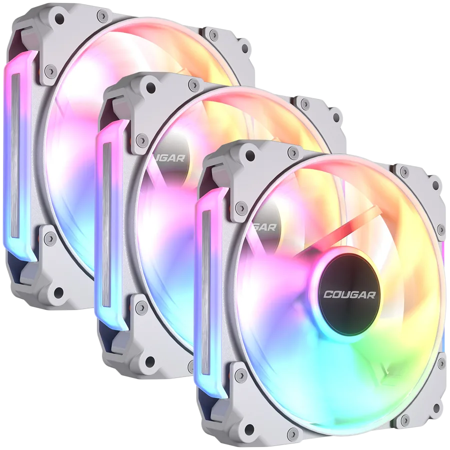 Вентилатор Cougar fan APOLAR 120 ARGB White (3 fan package), Fan Speed 600-2200 RPM±200RPM, Air Flow 75.38 CFM ± 10%, Air Pressure 2.59 mm H2O±10%, HDB Hydro Dynamic Bearing, 490 mm (Fan) / 470 mm (ARGB)