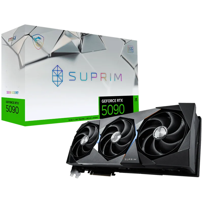 MSI Video Card Nvidia GeForce RTX 5090 32G SUPRIM SOC (32GB GDDR7/512bit, PCI-E Gen 5 x16, 3xDP, 1xHDMI, Recommended PSU 1000W, 3 fans)