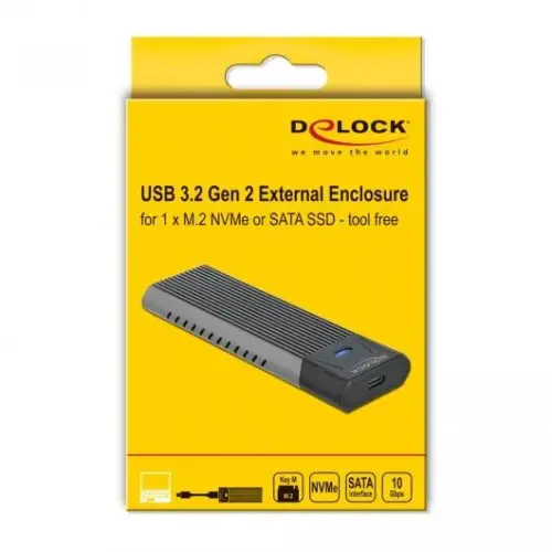 Външна стойка Delock, За M.2 NVMe PCIe или SATA SSD, USB-C 3.2 Gen 2, Инсталация без инструменти