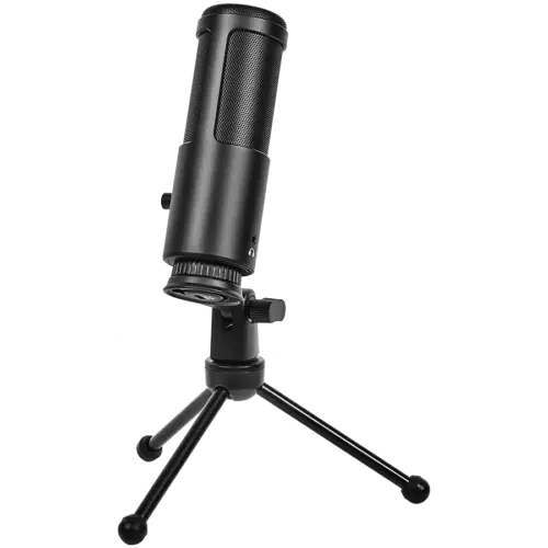 Геймърски микрофон LORGAR Voicer 521, Gaming Microphone, Black, USB condenser mic with Volume Knob, 3.5MM headphonejack, mute button and led indicator, package including 1x F5 Microphone, 1 x 2M type-C USB Cable, 1 xTripod Stand
