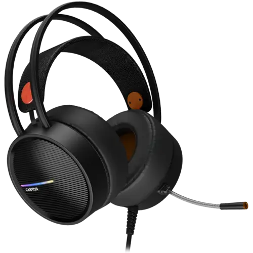 Геймърски слушалки CANYON INTERCEPTOR GH-8A, Gaming headset 3.5mm jack plus USB connector for LED backlight, adjustable microphone and volume control, with 2in1 3.5mm adapter, cable 2M, Black and Orange, 0.36kg