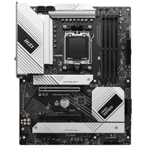 MSI PRO B650-A WIFI, ATX, Socket AM5, Dual Channel DDR5 7600+(OC)MHz, 2x PCIe x16 slot, 3x M.2 slots, 1x HDMI, 1x DP, 2xUSB 2.0, 4xUSB 5Gbps Type A, 3xUSB 10Gbps Type A, 1xUSB 20Gbps Type C, 7.1 HD Audio, 2.5Gbps LAN, Wi-Fi 6E, BT 5.3