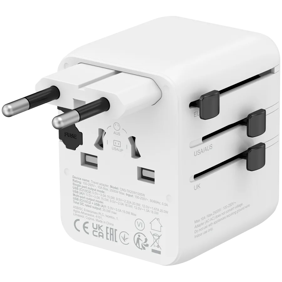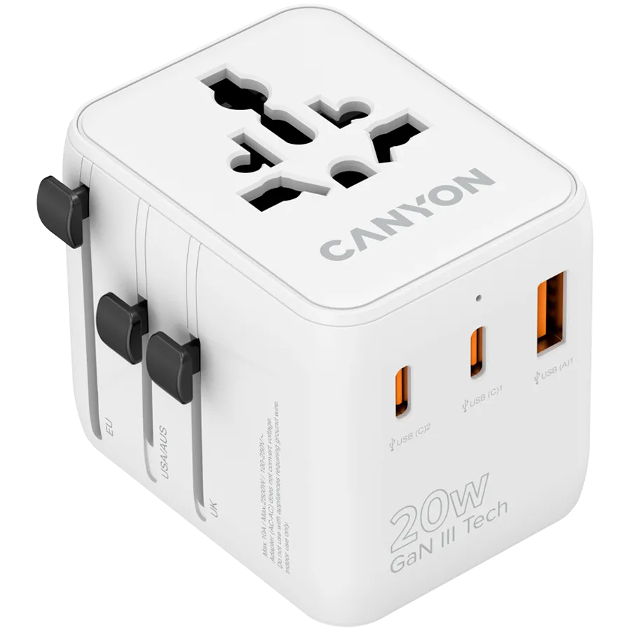 CANYON Travel Adapter OnTour 20 EU/UK/US/AUS 20W White