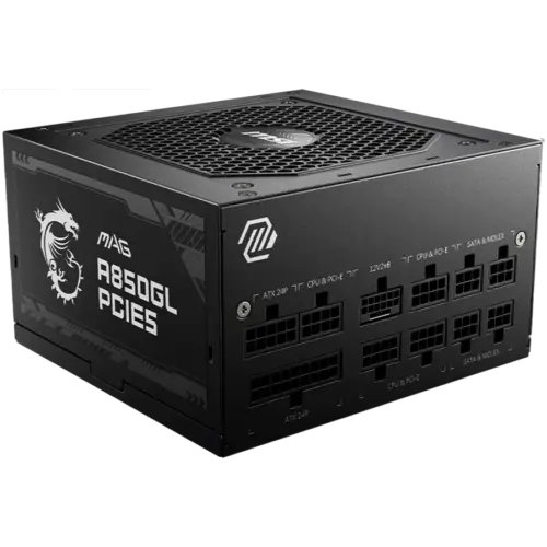 MSI MAG A850GL PCIE5, 850W, 80 Plus Gold, 120mm Fluid Dynamic Bearing Fan, Protections: OCP/OVP/OPP/OTP/SCP, Dimensions: 150mmx140mmx86mm, 7Y Warranty