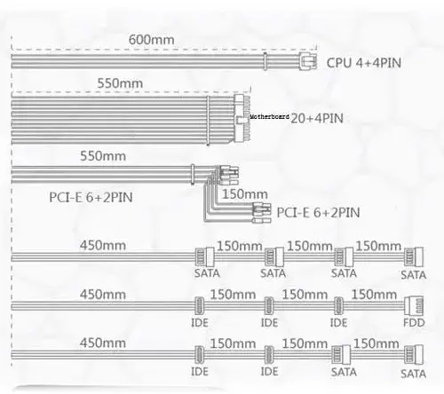 Дължина на кабелите : Line Type/ PCI-Express Connector (6+2) – 450 мм
