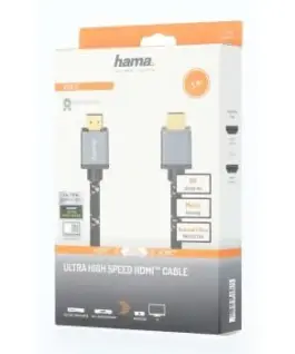 Кабел HAMA Ultra HD, HDMI мъжко – HDMI мъжко, 8K, 48GB/s,метал, 3 м, Позл. конектори, Ethernet, Черен