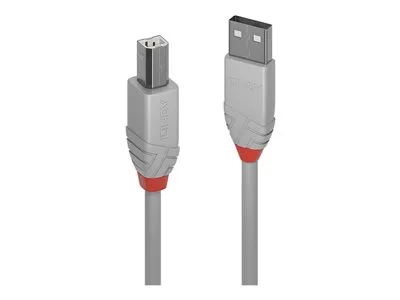 Lindy Anthra Line – USB кабел – USB (M) към USB Type B (M) – USB 2.0 – 2 m – кръгъл – сив – PN 36683