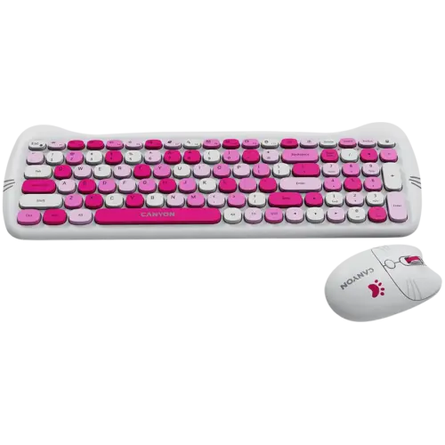 CANYON HSET-W6 EN Keyboard+Mouse Kitty Edition AAA+АА Wireless Pink