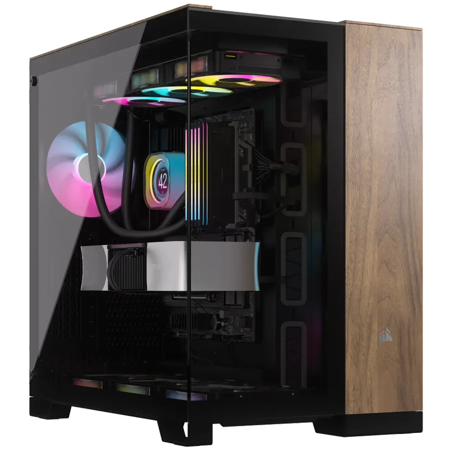Corsair 6500X Tempered Glass Mid-Tower, Black/Walnut Wood