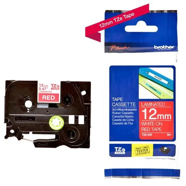 ЛЕНТА ЗА ЕТИКЕТНИ ПРИНТЕРИ BROTHER ТИП TZ – 12 mm x 8,0 m – WHITE ON RED TAPE – PN TZE435 (TZE-435)