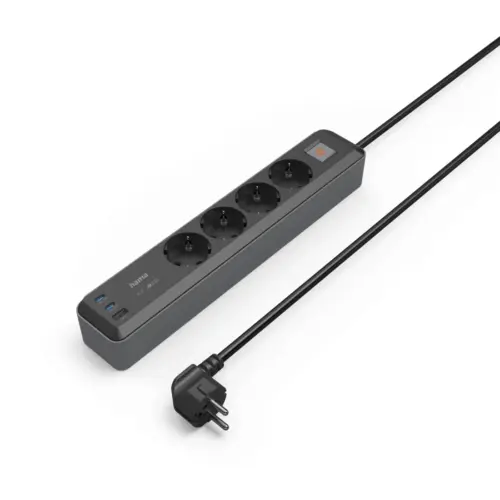 Разклонител, 4-гнезда, USB-C/A 65 W, PD, HAMA-223189
