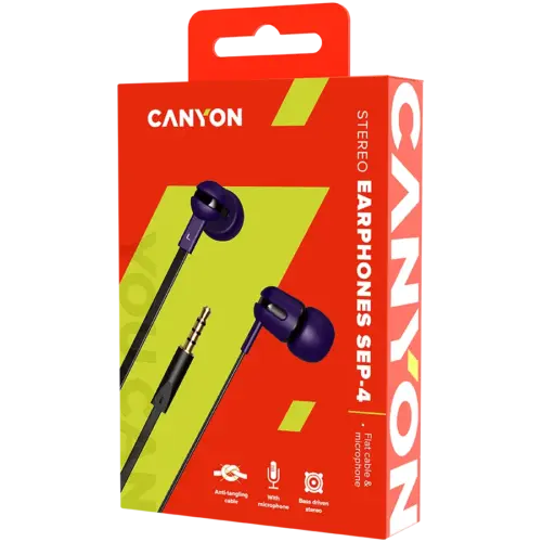Слушалки CANYON headphones SEP-4 Mic Flat 1.2m Violet