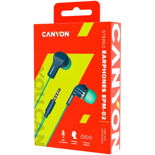 Търговско име : CANYON headphones EPM-02 Mic 1.2 m Blue Green
