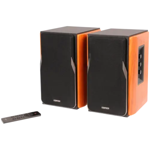 Edifier R1380DB 2.0 Bookshelf Speakers, BT V5.1, Optical, Coaxial, RCA, 1-inch Tweeters, 4-inch Drivers, 42W (RMS), Control Knobs and Remote Control, Brown