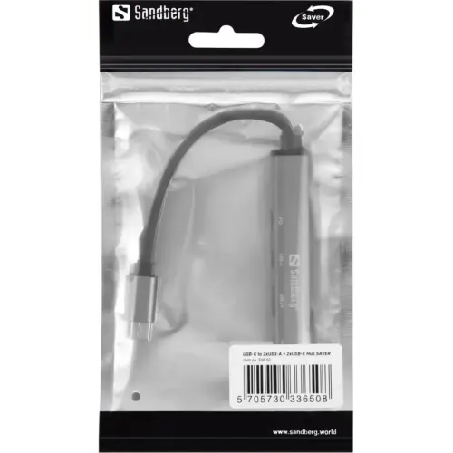 USB-C към 3xUSB-A+2xUSB-C SAVERSandberg USB-C към 3xUSB-A + 2xUSB-C Hub SAVER предлага много опции за свързване на допълнителни USB устройства към вашия компютър. Можете например да свържете едновременно външна USB памет, принтер и мишка. Портът USB-C PD65W ви позволява да зареждате повечето лаптопи, захранвани с USB-C, чрез хъба. Свържете го към USB-C порт и той ще работи веднага, без да е необходимо да инсталирате драйвери.
