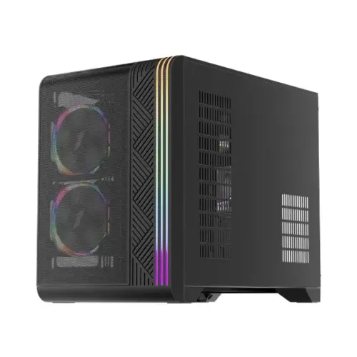 Mini-ITXФОРМ ФАКТОР : Mini TowerРАЗПОЛОЖЕНИЕ ЗАХРАНВАЩ БЛОК : ДолуПОДДРЪЖКА НА ВОДНО ОХЛАЖДАНЕ : 360 mm – Отстрани