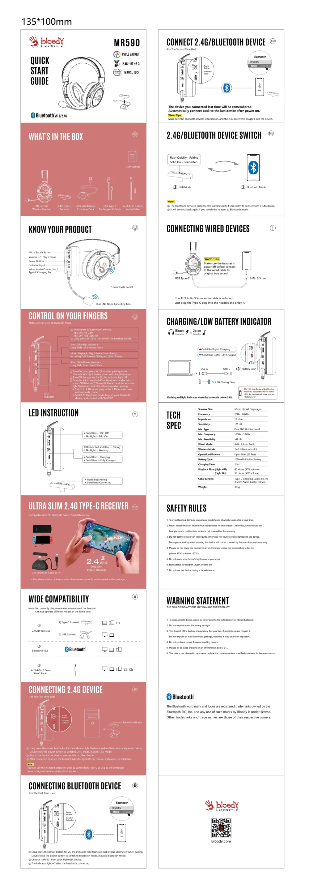A4tech Bloody МR-590 Геймърски безжични слушалки с микрофон,Bluetooth 3.5мм жак, бял