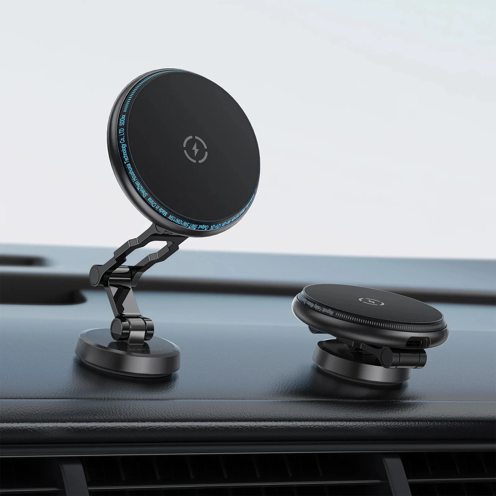 Acefast Зареждаща стойка за телефон за кола Car phone holder – MAG-Charging 15W, Metal, Magnetic Ring, 360 deg, Foldable – D30 – Black
