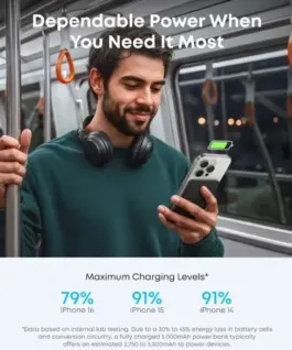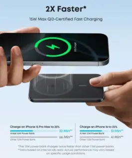 - MagSafe-compatible 15 W charging: With fast 15 W Max MagSafe-compatible charging, the Anker Nano Power Bank provides high mobile charging efficiency, charging an iPhone 16 Pro up to 25% in just 42 minutes. (Data based on internal laboratory tests, actual charging performance may vary.)