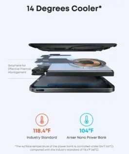- 104°F for safer operation: Thanks to advanced graphene cooling benefits, dual NTC chips, and intelligent charging regulation, this power bank stays below 104°F-14 degrees cooler than the industry standardensuring safer and more reliable charging performance.