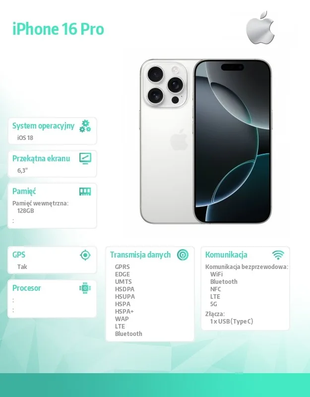 Apple iPhone 16 Pro 128GB – бял Titanium