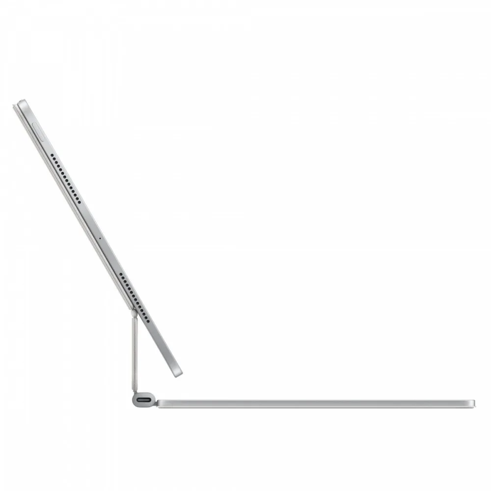 The Magic Keyboard for iPad Pro is a fantastic combination of a keyboard and trackpad in a new, sleek, and portable design with an aluminum palm rest. It features a row of 14 function keys, providing quick access to essential functions such as screen brightness and volume control, and includes a USB-C port for charging. The stand elegantly raises the device above the keyboard and allows effortless screen angle adjustment.