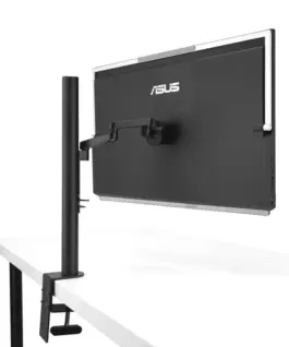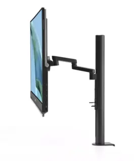 - Multiple stand options and accessories, including an integrated carrying handle/kickstand, height-adjustable C-clamp with Z-axis adjustment, and partition hook kit for flexible placement