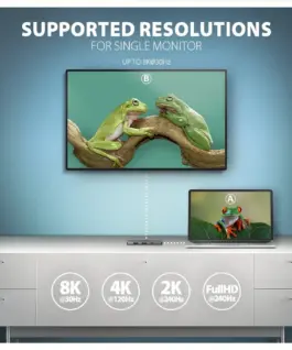 HDMI output provides high quality image up to 8K/30Hz and 4K/120Hz Ultra HD resolution supports multi-channel audio transmission. High frequencies at popular gaming resolutions of 2K/240Hz or FullHD/240Hz or FullHD/240Hz and 144HZ are also supported. Thanks to HDR (high dynamic range) support, you can enjoy a significantly expanded range of Цвятs and contrasts without restrictions. DisplayPort Alternate Mode (DP Alt Mode) enabled USB-C port or Thunderbolt 3/4 port is necessary for the proper function of video output.