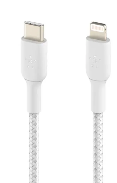 Belkin кабел оплетка USB-C Lightning 2m бял