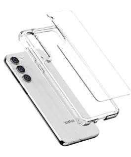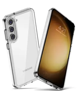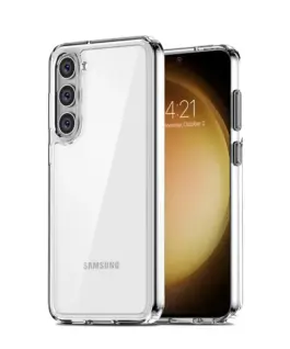 A transparent protective case by Crong for the Samsung Galaxy S23 that exposes and protects its case from all sides. The crystal-clear back made of hard acrylic combines with flexible sides that absorb the force of impact thanks to special Anti-Shock reinforcements.